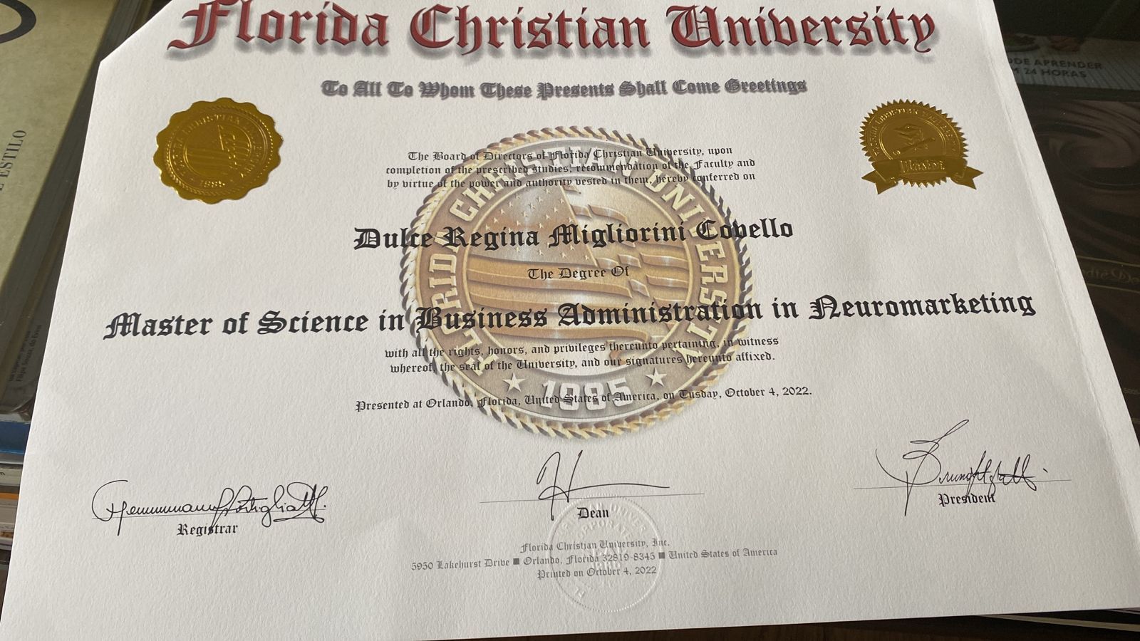- Mestra em Master of Science in Business Administration in Neuromarketing FCU-USA